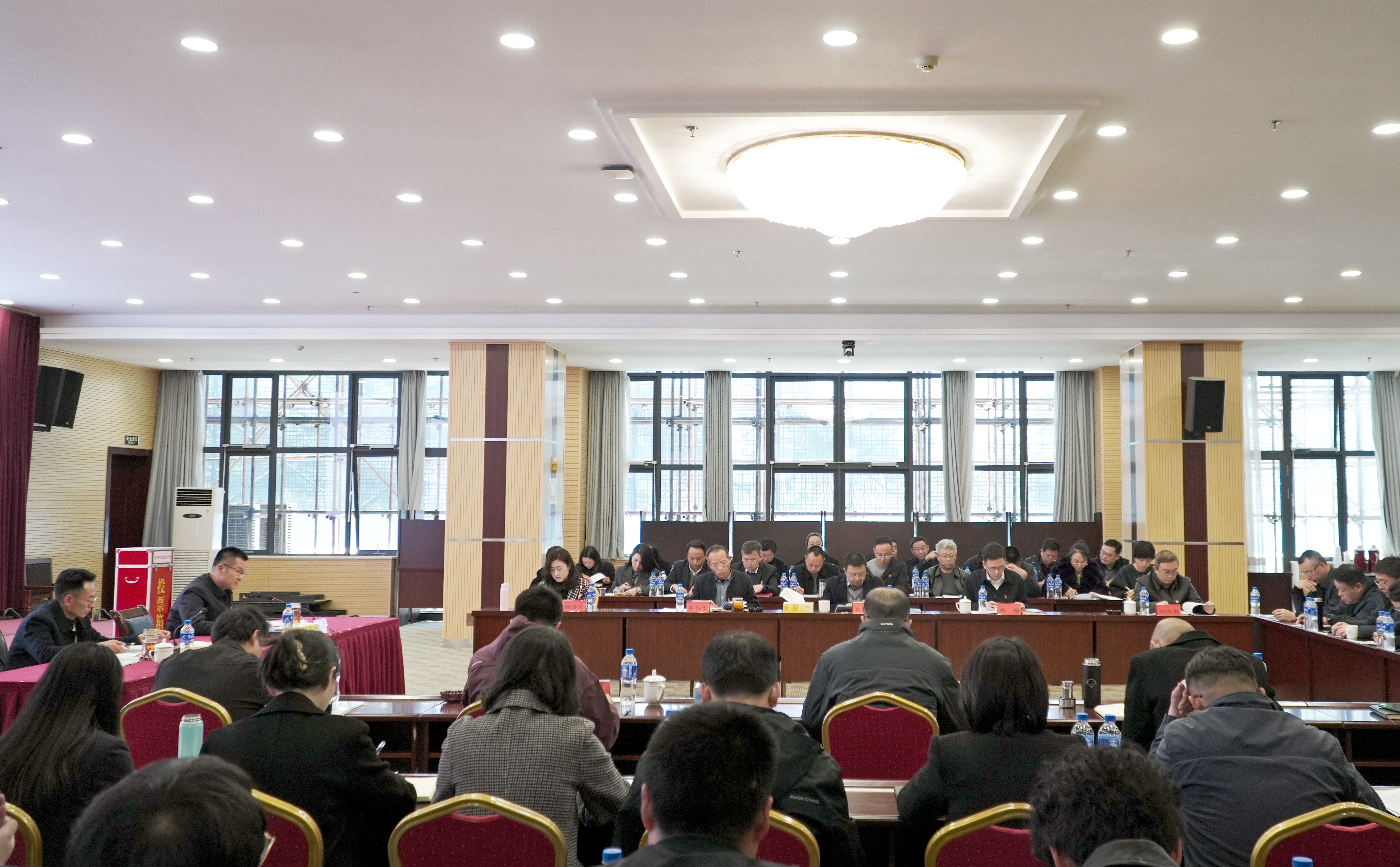 1月23日下午,昆明交投公司在301会议室组织召开2024年度领导班子和领导人员考核、干部选拔任用“一报告两评议”工作会。市委国有企业工委第一考核组组长、市国资委二级调研员唐中明带领考核组成员到会指导。公司党委书记、董事长、总经理马东山主持会议,领导班子成员、监事会成员、本部部门负责人、下属公司党政主要负责人及职工代表50余人出席。