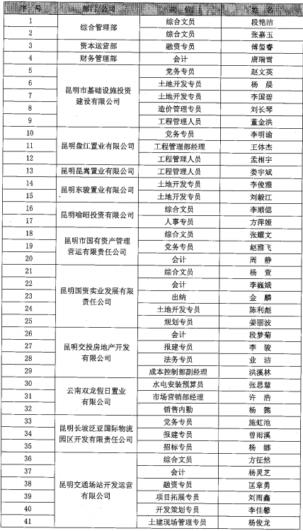 昆明市交通投资有限责任公司2019面向社会公开招聘拟录...