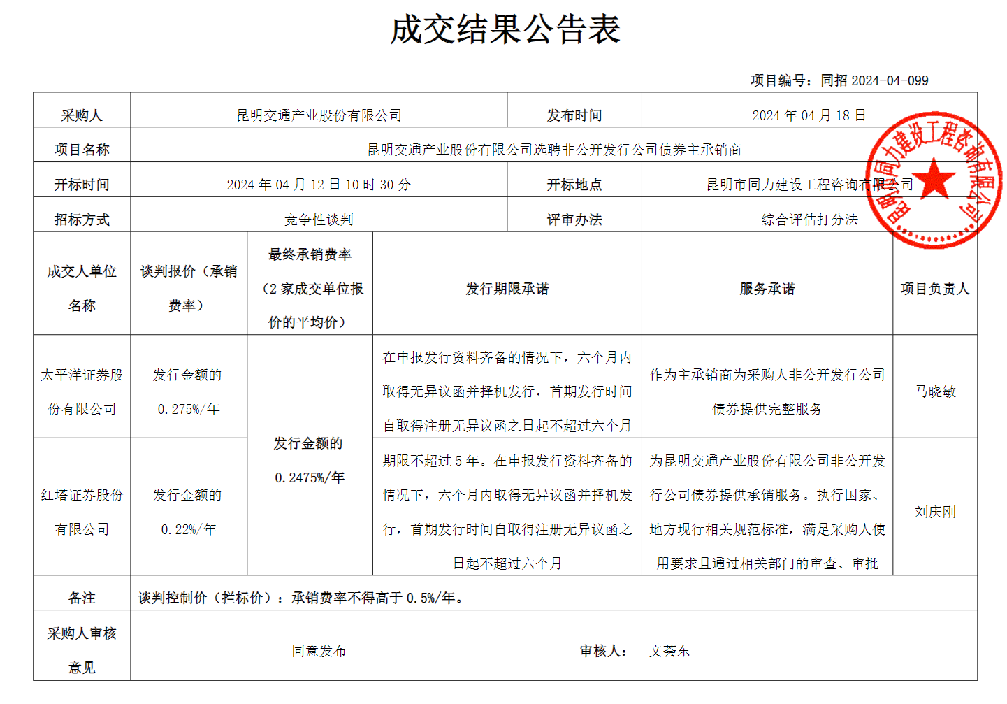 昆明交通产业股份有限公司选聘非公开发行公司债券主承...